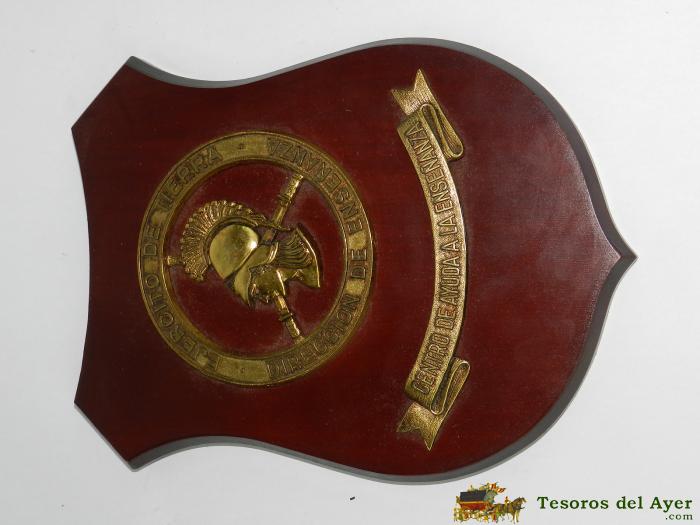 METOPA DE BRONCE Y MADERA BRIGADA AEROTRANSPORTABLE, MIDE 26 X 19 CMS.