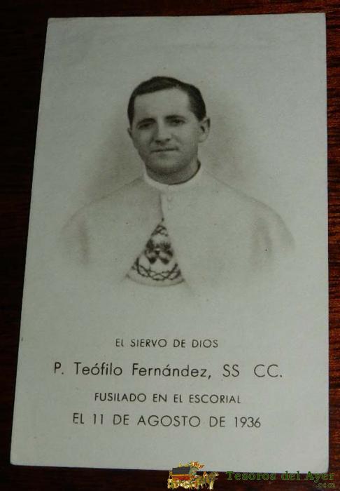 RECORDATORIO DE TEóFILO FERNANDEZ FUSILADO EN EL ESCORIAL 1936. 11 DE AGOSTO DE 1936.