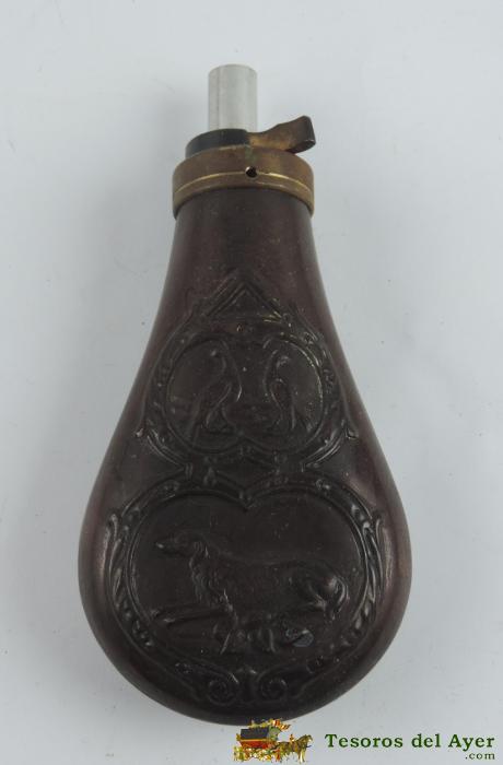 POLVORERA REMINTONG, PRECIOSA POLVORERA REMINGTON. FABRICADA EN COBRE Y LATóN. MECANISMO DOSIFICADOR INTERCAMBIABLE PARA CUALQUIER CALIBRE Y TODO TIPO DE ARMAS DE AVANCARGA. MIDE 15,5 CMS.