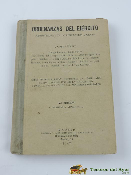 ORDENANZAS DEL EJéRCITO. ARMONIZADAS CON LA LEGISLACION VIGENTE. MADRID 1947. TIENE 338 PAG. TAPA DURA, MADRID. LIBRERíA Y CASA EDITORIAL HERNANDO. MIDE 19,5 X 14 CMS.