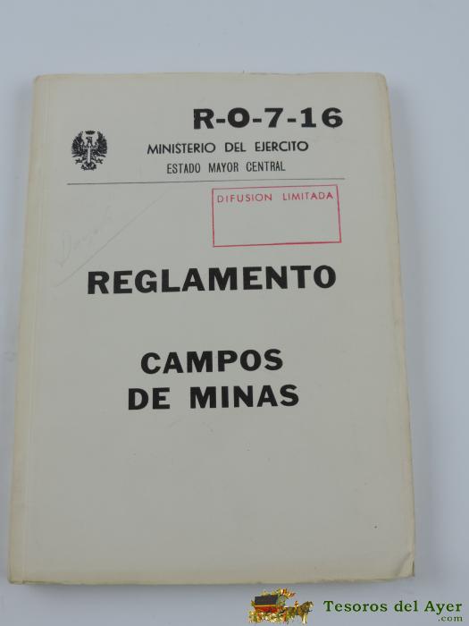 MANUAL REGLAMENTO. CAMPO DE MINAS, MINISTERIO DEL EJERCITO, TIENE 184 PAG, CON MUCHAS ILUSTRACIONES Y DESPLEGABLES, MIDE 21,5 X 15,5 CMS.