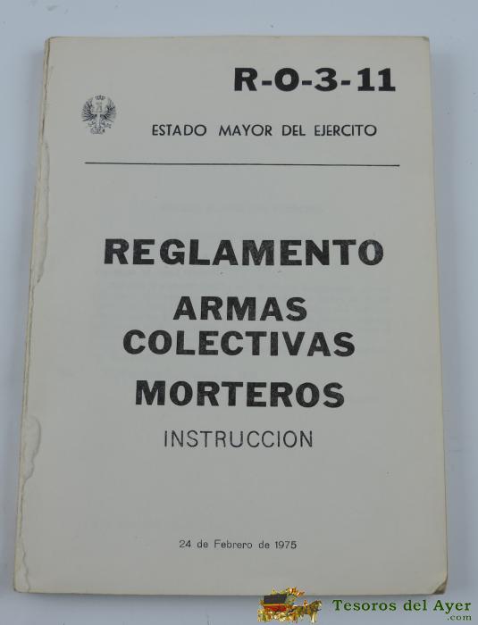 LIBRO EJERCITO ESPAÑOL. REGLAMENTO. ARMAS COLECTIVAS. MORTEROS 1975, TIENE 159 PAG, LE FALTA LA PORTADA, MIDE 21 X 15 CMS.