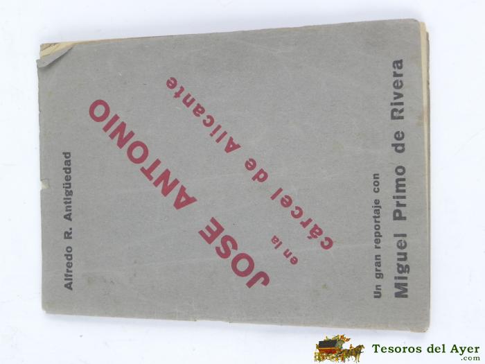 JOSé ANTONIO EN LA CáRCEL DE ALICANTE. UN GRAN REPORTAJE CON MIGUEL PRIMO DE RIVERA, POR ANTIGÜEDAD, ALFREDO R., IMPRENTA ERENSTO GIMéNEZ. MADRID, S/F. TIENE 19 CM. 63 PP.