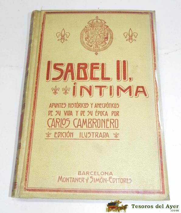 LIBRO ISABEL II, INTIMA, APUNTES HISTORICOS Y ANECTODAS, AñO 1908, POR CARLOS CAMBRONERO, BARCELONA. MIDE 16,5 X 24,5 CMS.
