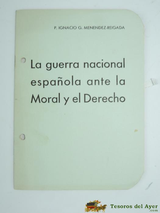 MENENDEZ-REIGADA, IGNACIO J. LA GUERRA NACIONAL ESPAñOLA ANTE LA MORAL Y EL DERECHO / POR EL R.P. FR. IGNACIO G. MENENDEZ-REIGADA, O.P. - BILBAO : EDITORA NACIONAL, TIENE 50 P. ; MIDE 19 CM. - ENC. EN RUSTICA, CON GRAPAS.