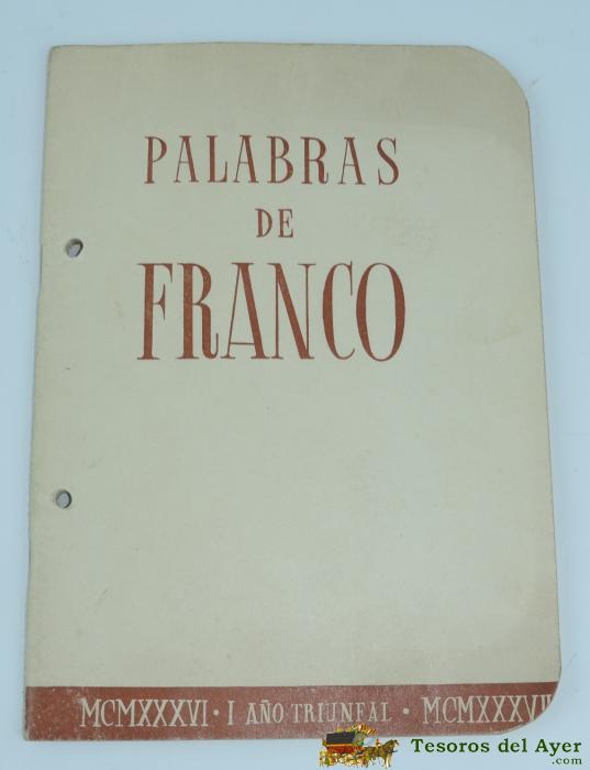 PALABRAS DE FRANCO, I AñO TRIUNFAL, 1936-1937, CON DISCURSOS Y ENTREVISTAS, TIENE 62P, MIDE 22 X 16 CM.