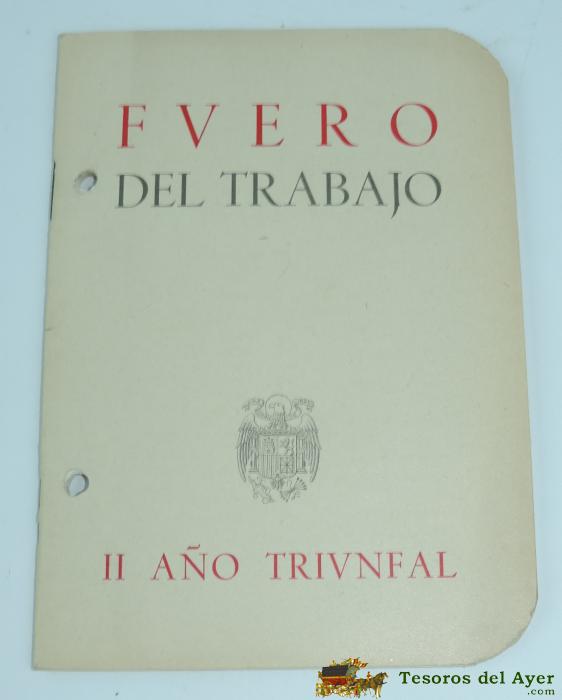 PROPAGANDA DEL FUERO DEL TRABAJO. II AÑO TRIUNFAL. EDITA/ IMPRENTA EDITORA NACIONAL. AÑO 1938. TIENE 54 PAG. ENCUADERNACIÓN EN RÚSTICA. MIDE 24 X 17 CMS.
