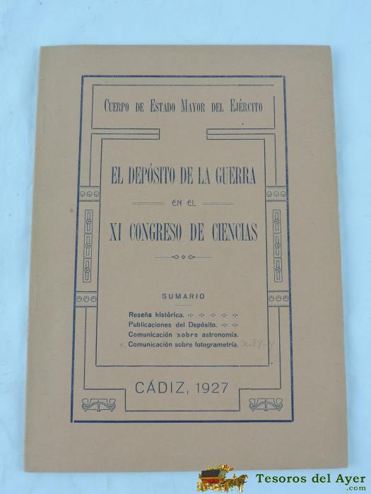 LIBRO EL DEPOSITO DE LA GUERRA EN EL XI CONGRESO DE CIENCIAS. CUERPO DE ESTADO MAYOR DEL EJERCITO. MADRID, 1927. TALLERES DEL DEPóSITO DE LA GUERRA. FOLLETO RúSTICA. 51 PAG.+ 4 ESTADOS DESPLEGABLES., 24X17CM. MUY BUEN ESTADO.