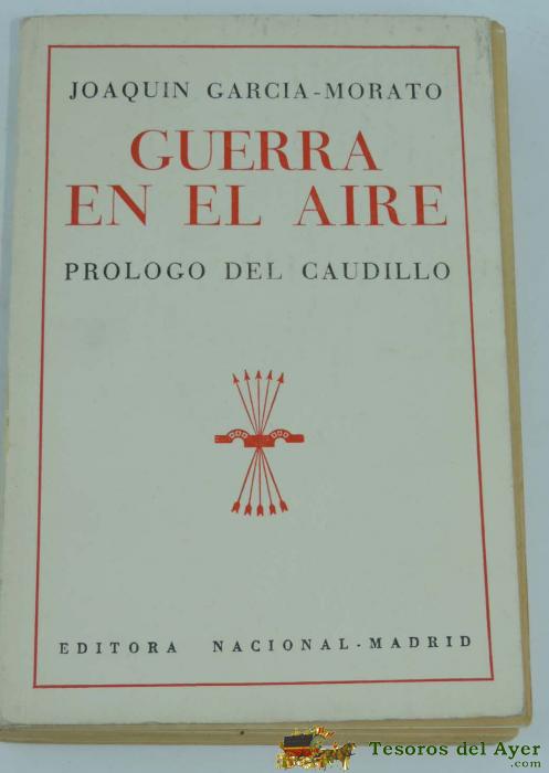 ANTIGUO LIBRO GUERRA EN EL AIRE - PROLOGO DEL CAUDILLO FRANCO - JOAQUIN GARCIA MORATO EL AS DE LA AVIACION NACIONAL - EN PERFECTO ESTADO DE CONSERVACION - AÑO 1940 - EDITORIAL NACIONAL DE MADRID - INCLUYE FOTOGRAFIAS - 210 PAGINAS.