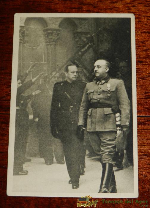 ANTIGUA POSTAL DE EL CAUDILLO A SU SALIDA DE LA CATEDRAL DE BURGOS, DESPUES DE LOS FUNERALES DE JOSE ANTONIO PRIMO DE RIVERA, EN EL SEGUNDO ANIVERSARIO DE SU MUERTE . DEPARTAMENTO PLASTICA, EDITORA NACIONAL - SIN CIRCULAR