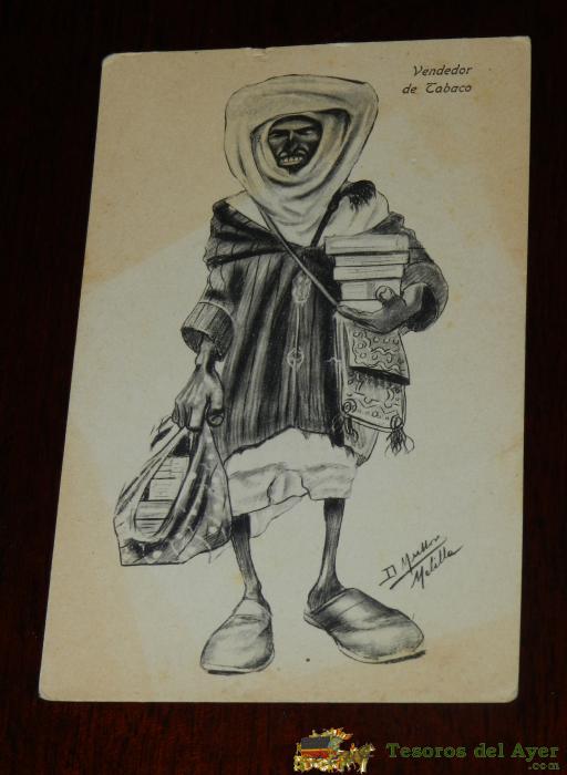 ANTIGUA POSTAL DE MULLOR, MELILLA, CARICATURA DE MORO - VENDEDOR DE TABACO - GUERRA DEL RIF - EDICION BOIX HERMANOS - SIN CIRCULAR.