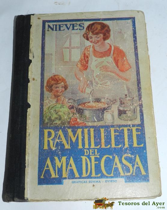 LIBRO RAMILLETE DEL AMA DE CASA. POR NIEVES, AÑO 1944, CONTIENE FÓRMULAS DE COCINA Y REPOSTERIA. OVIEDO 1944. GRÁFICAS SUMMA. TIENE 274 PAG. MIDE 20,5 X 13 CM.