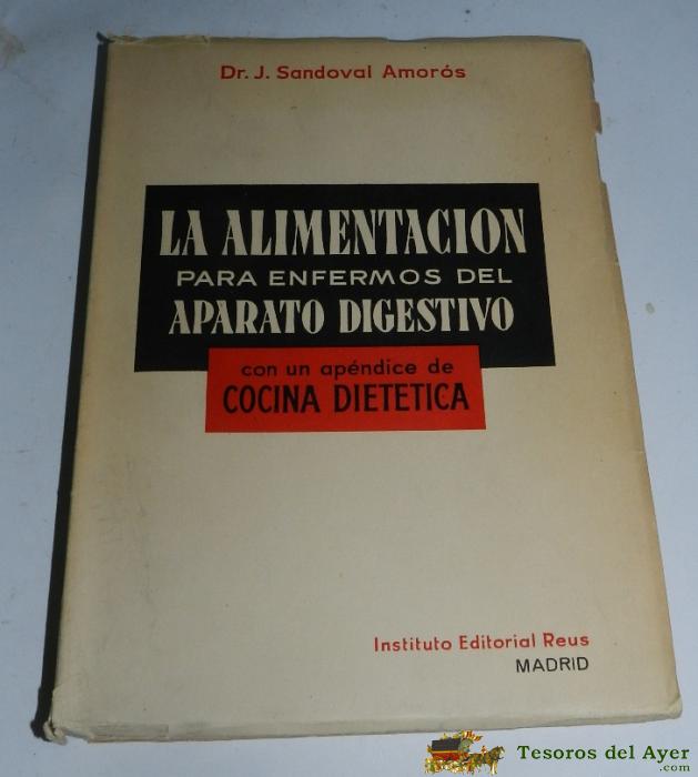 LIBRO LA ALIMENTACIÓN PARA ENFERMOS DEL APARATO DIGESTIVO. CON UN APéNDICE DE COCINA DIETéTICA. GUíA PARA. POR SANDOVAL AMORÓS, J - ED. REUS, AÑO 1954, MIDE 22 X 16 CMS.