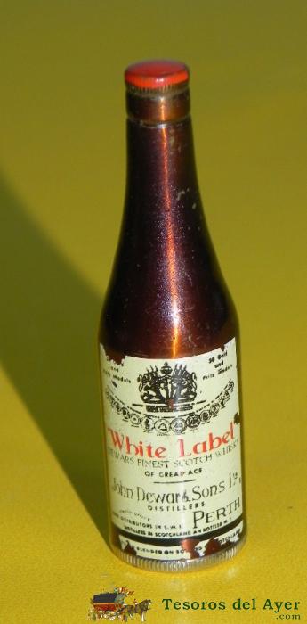 ANTIGUO MECHERO O ENCENDEDOR DE GASOLINA, CON FORMA DE BOTELLA DE WHITE LABEL, EN LA BASE PONE EPIG. C, HEROLD. LIC Nº 3, MIDE 6,5 CMS., MIDE 7 CMS.