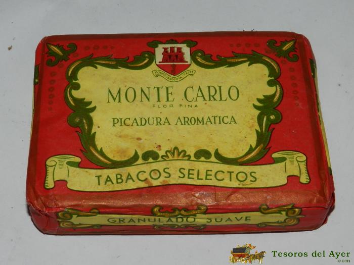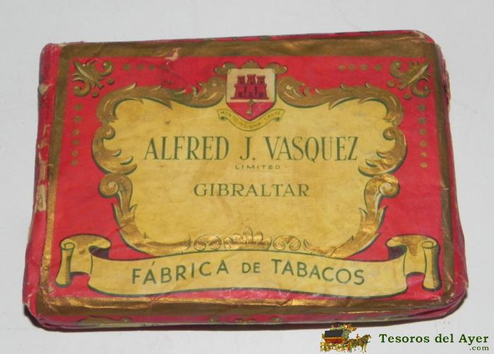 ANTIGUO CUARTERON DE TABACO DE GIBRALTAR, ALFRED J. VASQUEZ, FABRICA DE TABACOS MONTECARLO, FLOR FINA, PICADURA AROMATICA, TABACOS SELECTOS, SE LLAMABA CUARTERON PORQUE PESA LA CUARTA PARTE DE UNA LIBRA, ES DECIR 115 GRAMOS. MIDE 12 X 8,5 X 2 CMS. EXCELEN