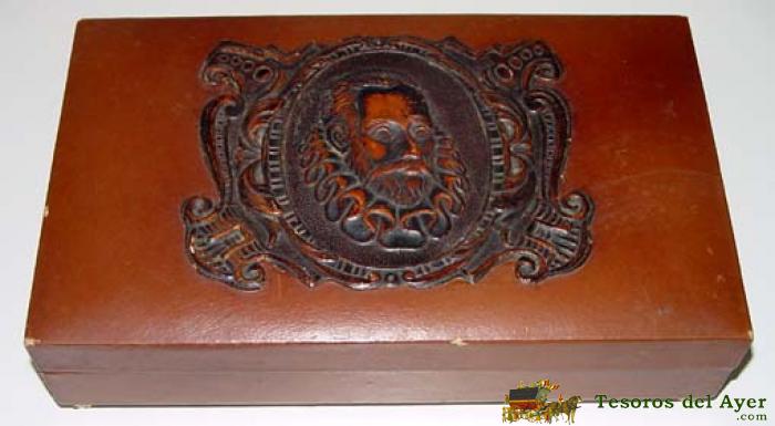 ANTIGUA CAJA DE MUSICA PARA CIGARROS CON MOTIVO DE CERVANTES (QUIJOTE) - MUSICA PASODOBLE VALENCIA - MIDE 27X16X7CMS.