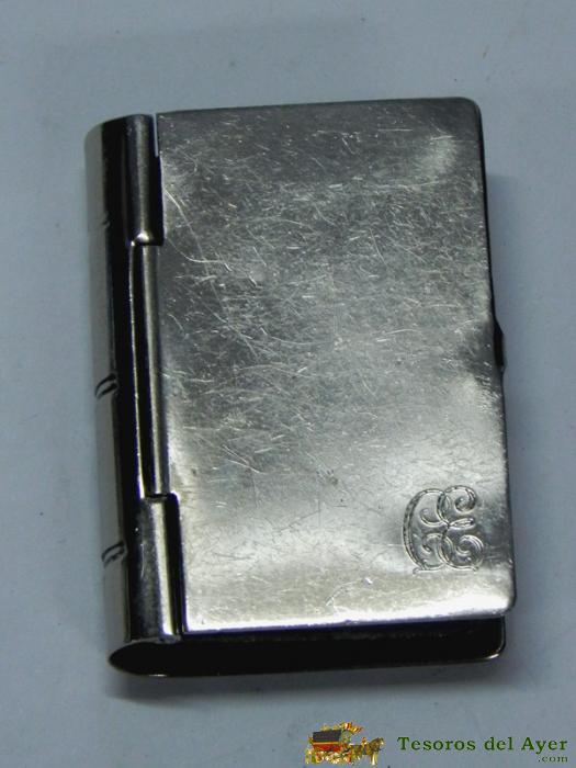 ANTIGUA CAJITA CERILLAS O PASTILLERO METALICA CON FORMA DE LIBRO, PRECIOSA, MIDE 4,8 X 3,5 CMS.