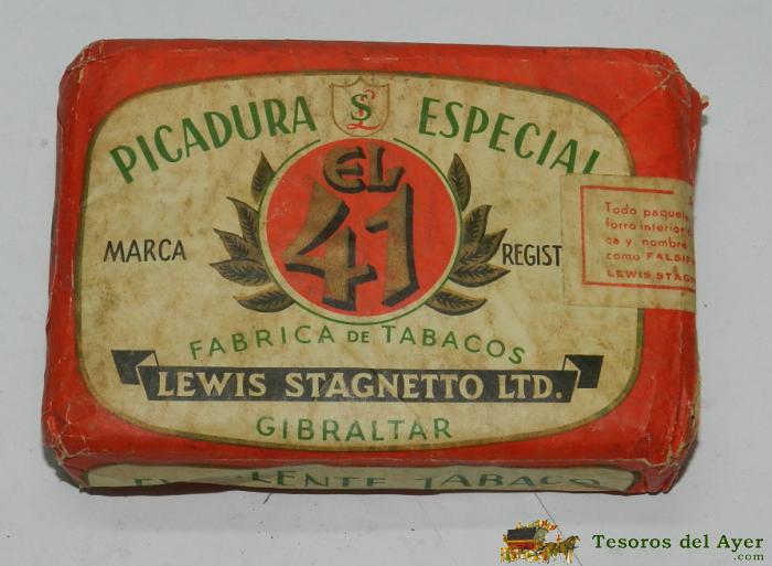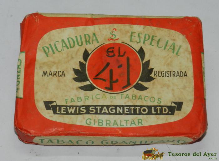 PAQUETE TABACO PICADURA EL 41, GIBRALTAR 4 ONZAS, SIN ABRIR, MIDE 12,5 X 8,5 X 2 CMS.