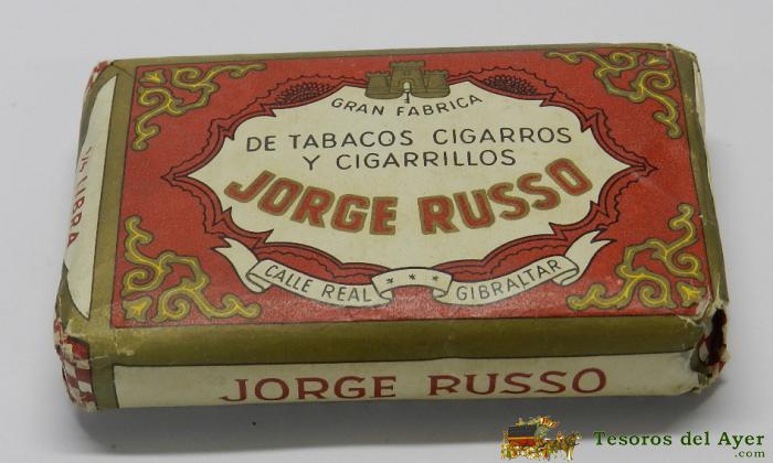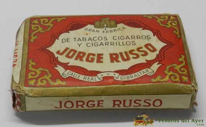 ANTIGUO PAQUETE DE TABACO, UN CUARTO DE LIBRA, PICADURA ESPECIAL JORGE RUSSO, JORGE RUSSO, CALLE REAL Nº 8 GIBRALTAR. MIDE 12 X 8 CM. TAL COMO SE VE EN LAS FOTOS PUESTAS.