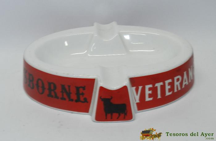 CENICERO DE CERÁMICA CON PUBLICIDAD DE OSBORNE Y VETERANO - REALIZADO POR PONTESA, CHINAMODA - AÑOS 60-70, MIDE 18 CMS.