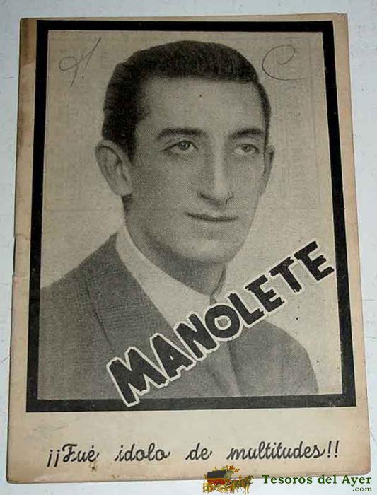 TIJERETAS GOMEZ, FRANCISCO. MANOLETE. ¡¡ FUE íDOLO DE MULTITUDES !! MADRID: IMPRENTA TORERíAS, 1947 4TO. 31 PP. ENCUADERNACIóN EDITORIAL. RETRATO DE MANOLETE EN PORTADA. PERFECTO ESTADO.
