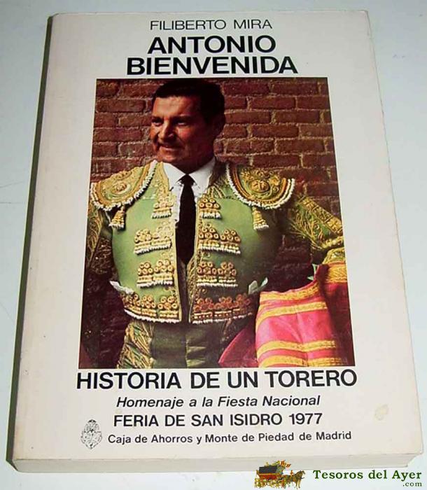 ANTIGUO LIBRO DE ANTONIO BIENVENIDA - POR FILIBERTO MIRA - TOROS - TAUROMAQUIA - CAJA DE AHORROS Y MONTE PIEDAD MADRID - AÑO 1977 - 380 PAG - MUCHISIMAS FOTOGRAFIAS - RUSTICA - MIDE 22 X 15 CMS.