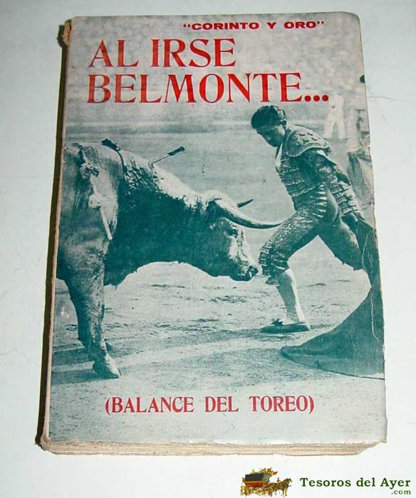 ANTIGUO LIBRO AL IRSE BELMONTE - (BALANCE DEL TOREO) - TOROS, TAUROMAQUIA - POR CLAVO SANTOS (MAXIMILIANO) "CORINTO Y ORO" - MADRID, S.A. (1935) - 238 PáGS., CON DIBUJOS ITERCALADOS EN EL TEXTO, RETRATOS Y LáMINAS. - MIDE 19 X 13 CMS.