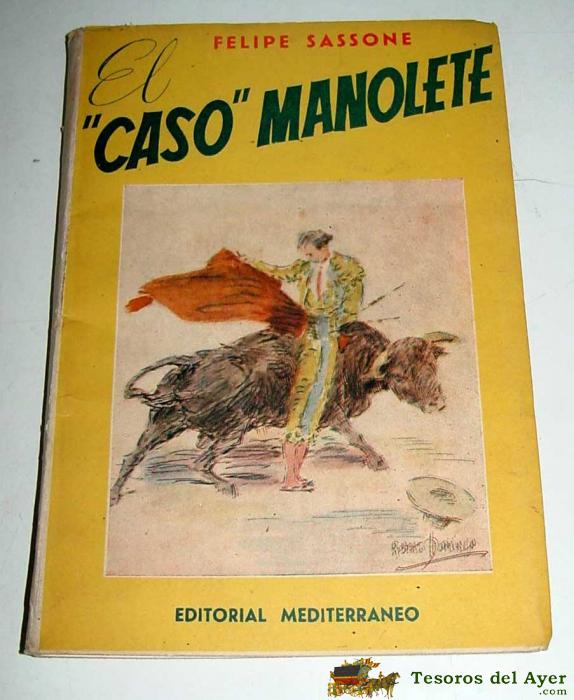 ANTIGUO LIBRO EL CASO MANOLETE - POR FELIPE SASSONE - TOROS, TAUROMAQUIA - AñO 1943 (Y VARIAS DIVAGACIONES TAURÓMACAS ANTES Y DESPUÉS DE JOSELITO Y BELMONTE) - EDITORIAL MEDITERRÁNEO. RÚSTICA EDITORIAL - 109 PÁGINAS - MIDE 18,5 X 12 CMS.