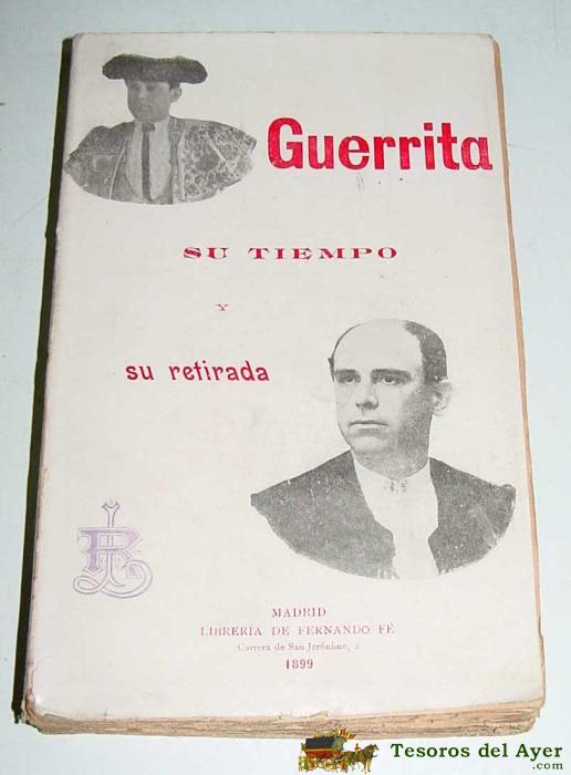 ANTIGUO LIBRO GUERRITA - SU TIEMPO Y SU RETIRADA. (1899) - TOROS, TAUROMAQUIA, POR LADISLAO REDONDO. IMPRENSOR R. VELASCO, MADRID, 1899. 311 PáGINAS. - MIDE 18,5X12 CM. - ILUSTRADO CON RETRATOS DE TOREROS, PEQUEñOS DIBUJOS Y CAPITULARES. MUY RARO.