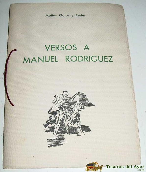 VERSOS A MANUEL RODRIGUEZ, (MANOLETE), MATIAS GOTOR Y PERIER, CON FIRMA AUTOGRAFA Y DEDICATORIA DEL AUTOR, 1947, EJEMPLAR NUMERADO CON EL 179 DE 200 EJEMPLARES QUE SE HICIERON QUE NO SE VENDEN - TIENE 11 PAGINAS Y MIDE 24,5 X 17 CMS., CARTULINA MUY BUENA