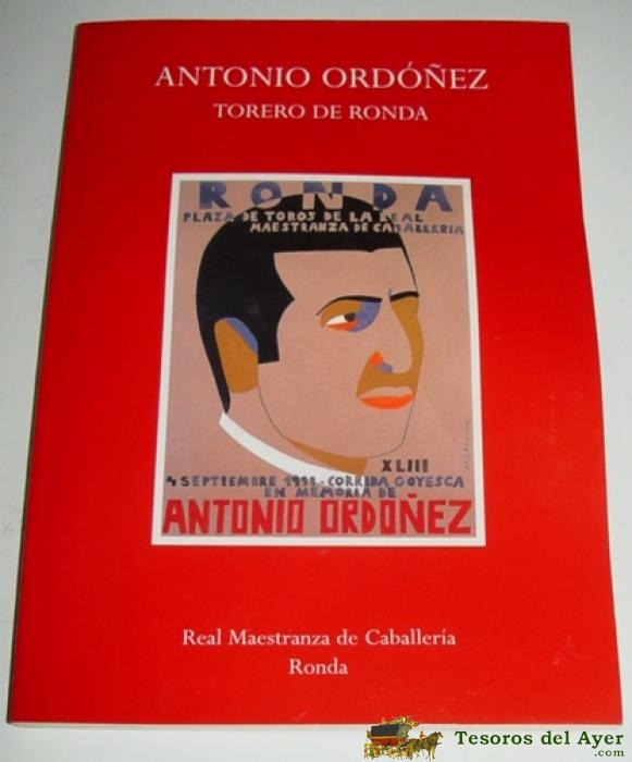 LIBRO ANTONIO ORDÓNEZ - TORERO DE RONDA - TOROS - REAL MAESTRANZA DE CABALLERÍA DE RONDA - AÑO 1999 - TIENE 109 PÁG - MIDE 24 X 17 CMS.