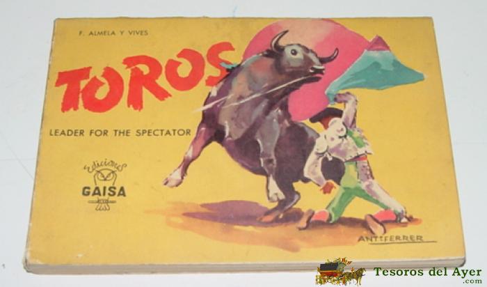 LIBRO TOROS - GUIA DEL ESPECTADOR POR F.ALMELA Y VIVES - EDICIONES GAISA, ILUSTRACIONES DE ANTIFERRER - AñO 1959 - 118 PAG. - EN INGLES - MIDE 11 X 16 CM.