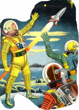 - 40 cuadros, con posters de películas , así como con las portadas de los tebeos e ilustraciones relativas a la aventura espacial entre 1940 y 1970.